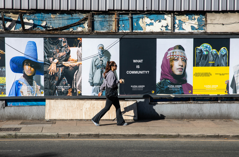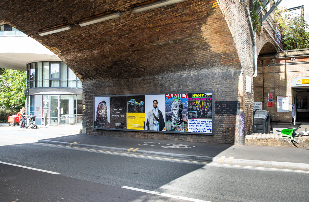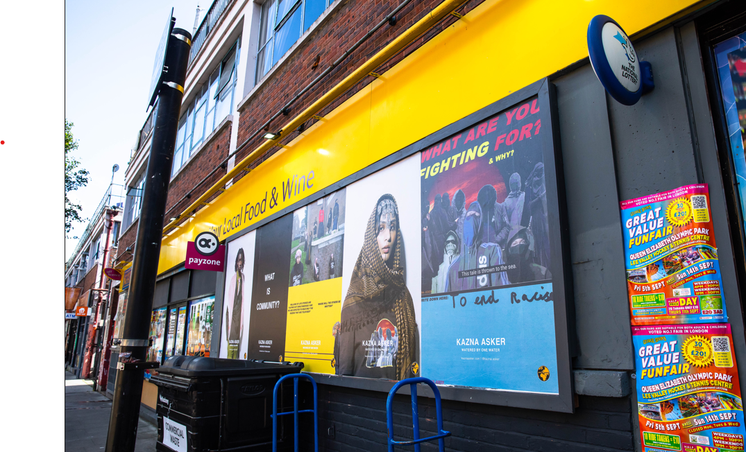 The initiative offers artists and creatives a platform to bring their work directly to the streets. Her billboard campaign combined text and imagery with a strong focus on messaging. The works featured her AW25 collection, handwritten posters created by her local community, campaigns with youth clubs, as well as message-driven texts, poetry, and verses from the