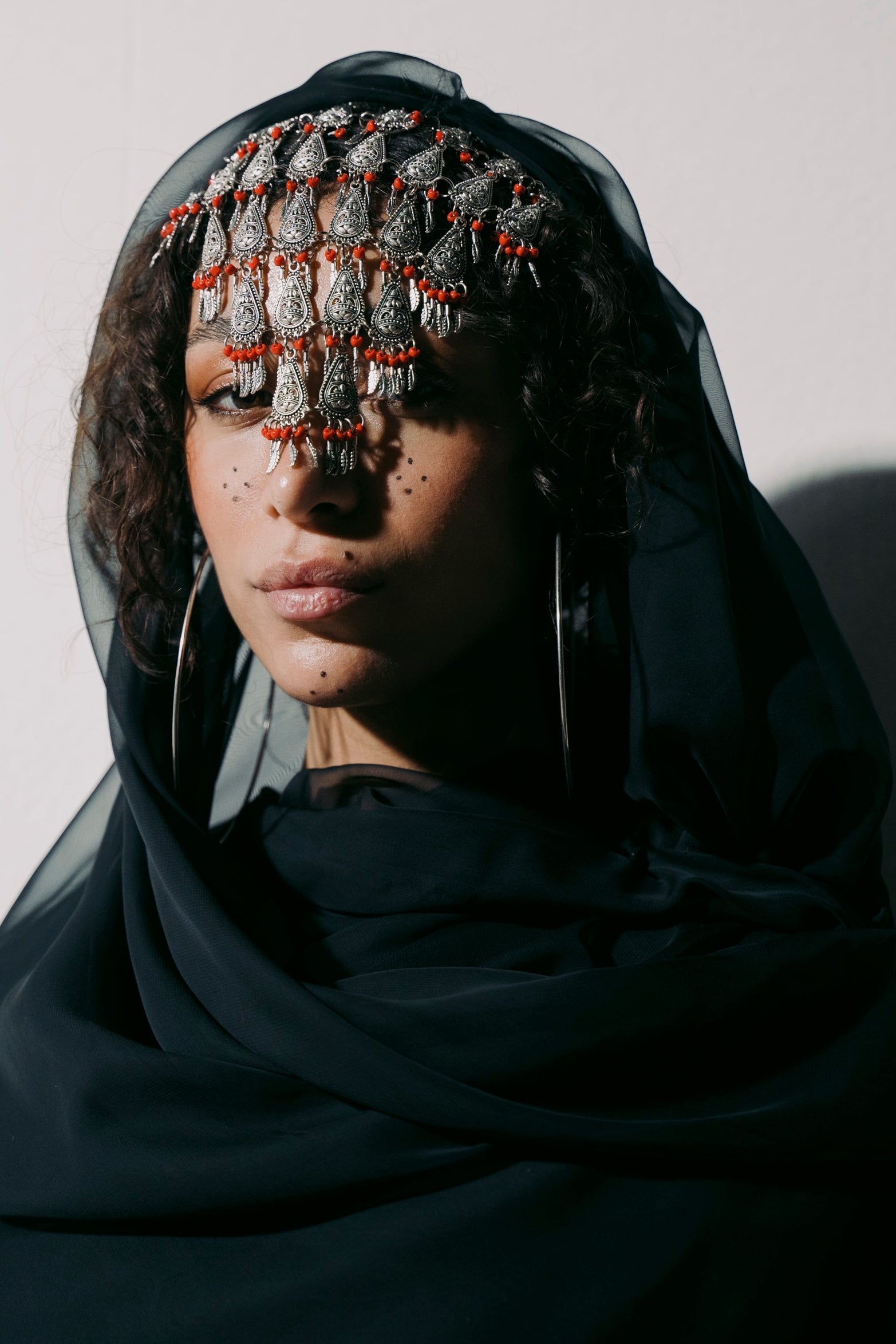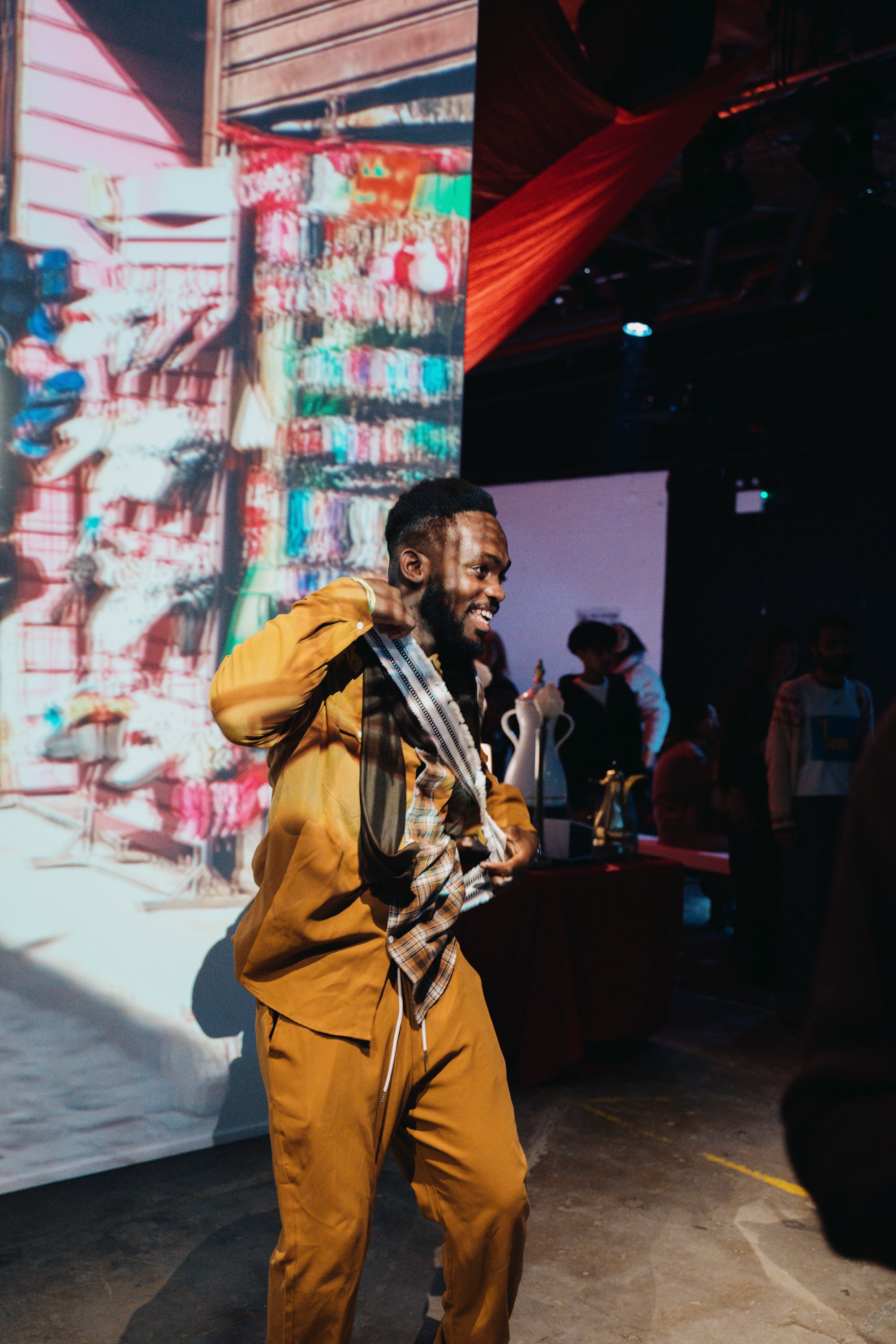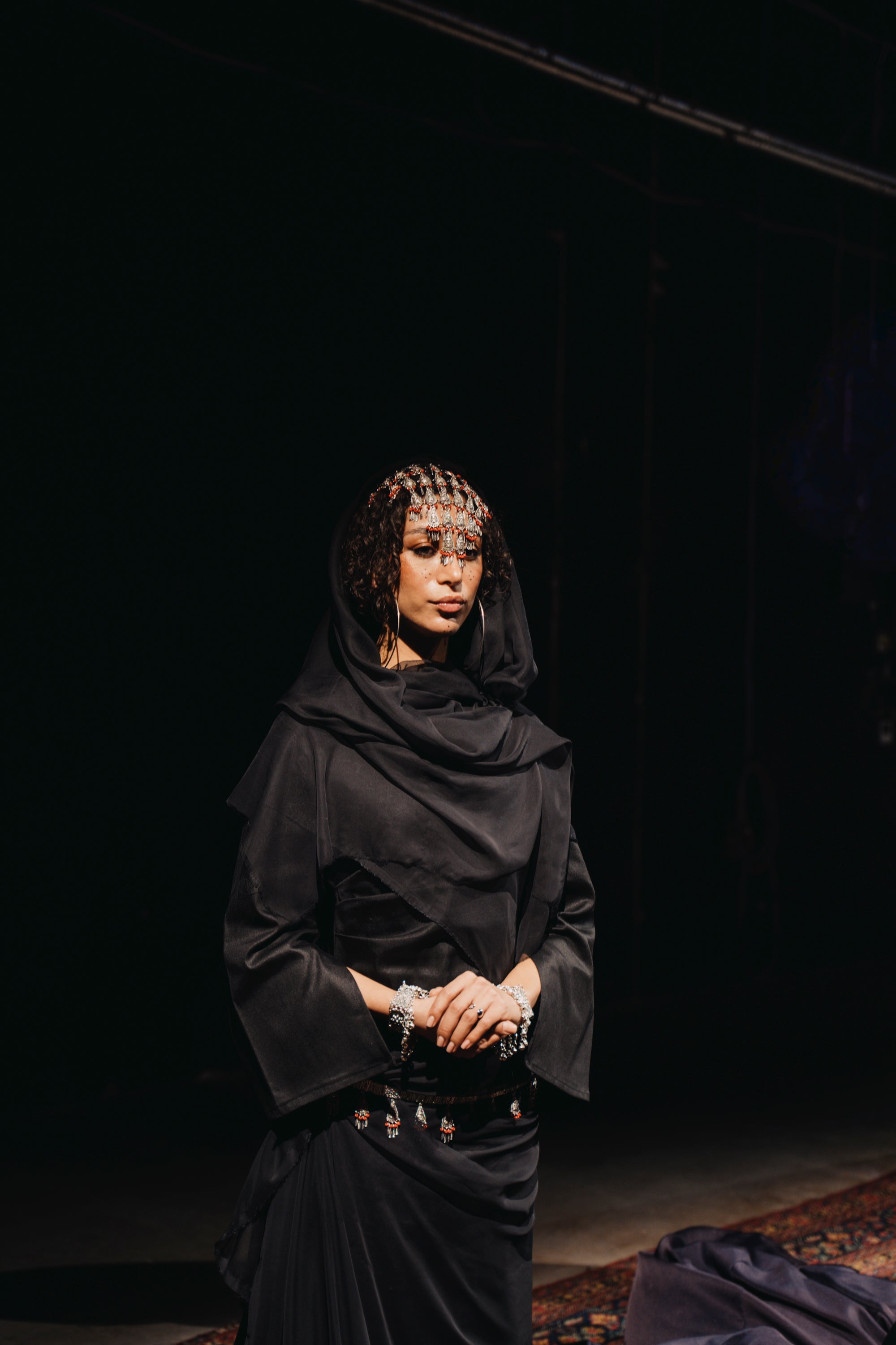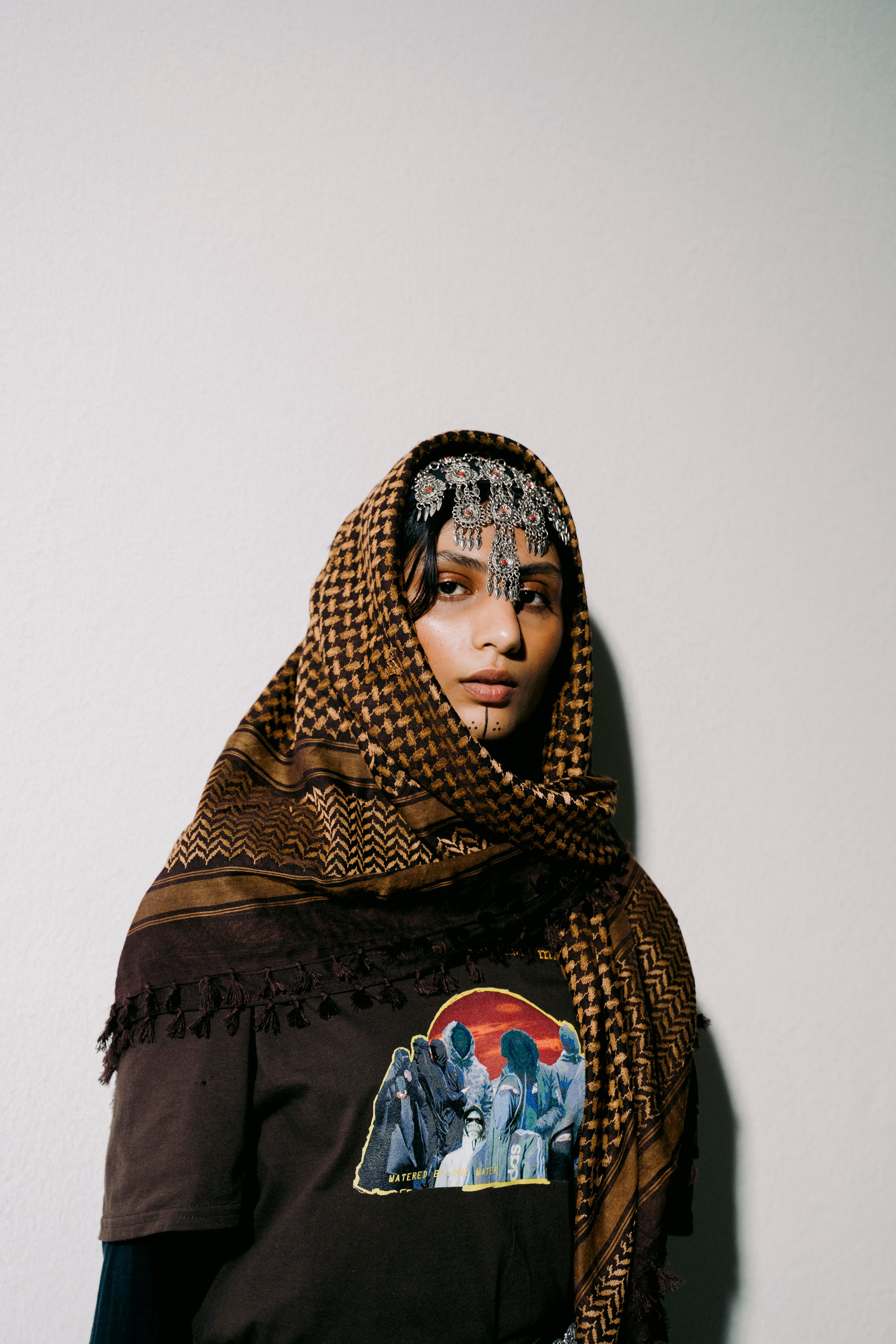 reinterpreted through sportswear and contemporary tailoring, while menswear bridges generations by pairing traditional thobes and cloaks with tracksuits and cargo trousers. Each piece becomes a bridge between landscapes, generations, and identities, linking Yafa’s mountains to Sheffield’s streets.