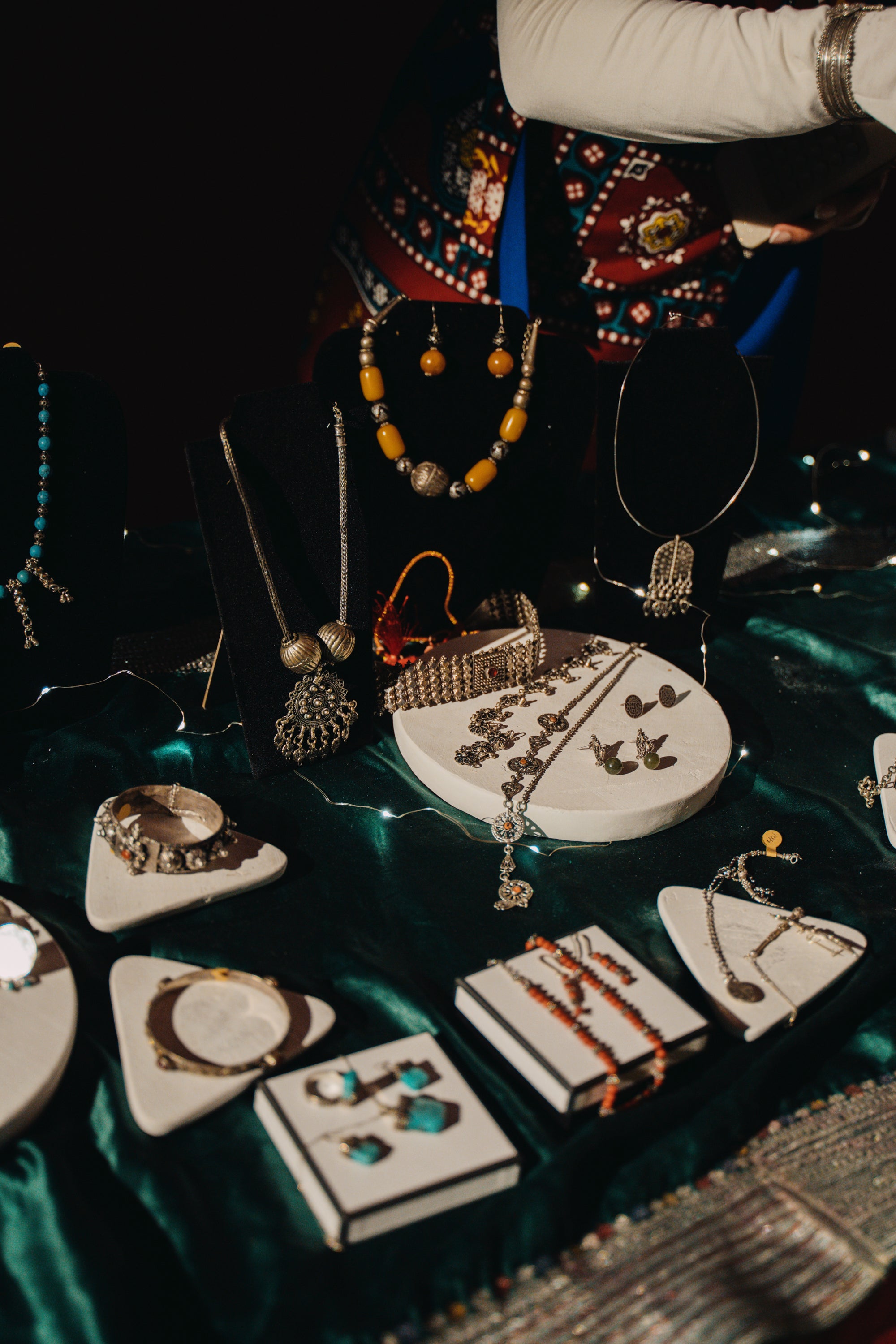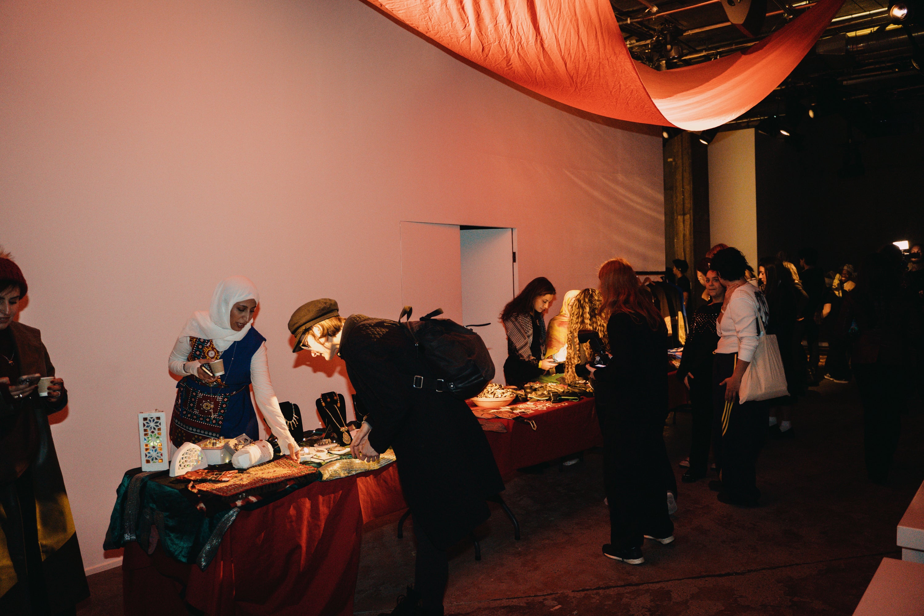Yemen and the corner shops of Sheffield’s Burngreave. The souk showcases a mix of independent and youth-led initiatives, including Maqam Books, The West Asian North African Women’s Library, Sazar Jewellery, and YENOF’s hand-embroidered canvases supporting women’s education in Yemen. Alongside these are zines, Arabic calligraphy, traditional silver, drums, chai, and Arabic coffee—animated by Sheffield & Oldham’s SBC theatre company, who embody merchants and tradespeople. More than a market, the souk becomes a theatre of exchange and connection, celebrating shared traditions of trade, storytelling, and community.